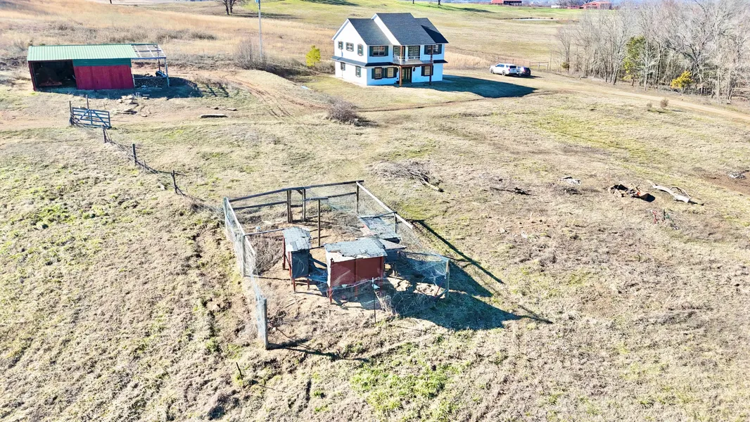Welcome to your serene country retreat! This stunning two-story home, featuring 4+ bedrooms and 3 baths, is perfectly situated on 11 picturesque acres. With a mature, producing garden spanning an acre and a half, a barn, and a chicken coop, this property offers the ideal blend of rural living and modern convenience. Upon entering, you'll find two bedrooms on the main level, complemented by an office or additional bedroom, a cozy living area, and a convenient kitchenetteperfect for guests or family gatherings. The upstairs features two spacious bedrooms, two bathrooms, and a large open living area that creates a welcoming atmosphere for relaxation and entertainment. The centerpiece of this home is the charming custom kitchen, boasting granite countertops and ample storage space to meet all your culinary needs. The kitchen's design seamlessly integrates with the living space, making it easy to host family and friends. Step out from the upstairs living room onto a lovely balcony that overlooks the expansive 11-acre property, providing a perfect spot to enjoy your morning coffee or watch the sunset. This property comes complete with all kitchen appliances, including a washer and dryer, which will convey with the sale. Additionally, a 55 hp tractor with a front-end loader, tiller, and a 6-foot brush hog can be purchased at an additional price. The option to buy the property furnished is also available at the right price. Situated just minutes from town, this home offers the best of both worlds: the tranquility of country living and easy access to local amenities. With rentals allowed and no HOA restrictions, this property presents an excellent investment opportunity. Dont miss your chance to own this beautiful home with extensive land and features, including the added bonus of a chicken coopschedule a viewing today!