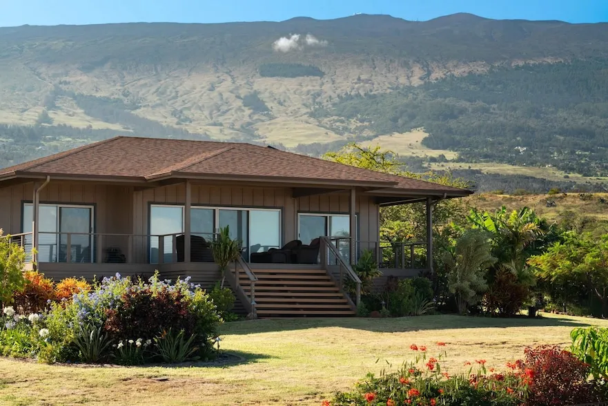 Nestled within an exclusive gated community of several small farm lots, this newly constructed residence rests at the end of a quiet cul-de-sac on an expansive 8-acres, offering a rare blend of privacy and sweeping bicoastal ocean views. The thoughtfully designed home features a spacious layout, accentuated by high ceilings and ample natural light, creating a seamless transition between the indoor and outdoor living spaces. The open chef's kitchen is equipped with slate appliances, a gas range and farmhouse sink. Complemented by a covered lanai, it s the perfect setting for farm-to-table dining while reveling in the panoramic views. Located at an ideal elevation of 1400-1500 feet, the property offers a comfortable climate and year-round growing season for 25 fruit trees, white pineapple, lilikoi, dragonfruit, and a variety of fragrant and rare botanicals. There are irrigated raised garden beds, and multiple fenced pastures for four-legged family members. A generous two-car garage with a finished interior and a custom stained concrete driveway enhance the serene retreat. Outfitted with a 5/8 county water meter and underground utilities, construction of a main home on the lot is still possible to complement this existing luxury cottage dwelling. Revel in the enchanting beauty of this Lower Kula landscape. Call your realtor to schedule a showing today!
