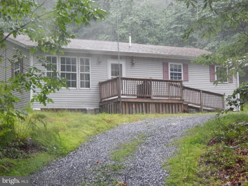 A Rancher home nestled in the woods. 2 bedrooms, 2 baths. 8.09 acres on two lots. Kitchen, dining combo with breakfast bar. Laminate flooring through out. Appliances convey. New stove. Springs on the property. Master bedroom has a masterbath with a walk-in shower. Separate room off deck could be used for an office . Back deck. Front handicap ramp attached to deck. Detached 4 car garage. Community lake with beach, Hiking trail. Owner Financing available with $35,000.00 down,4% interest rate, 30 years. Property backs up to Sleepy Creek State Forest. The community has 7 acre spring fed lake with beach and pier, baseball field with picnic pavilion and well for water for those who do not have a well on their property. Entire community surround by Sleepy Creek Wildlife Management Area with 205 acre Lake for fishing. Hunting and lots of wildlife turkey, squirrel, grouse, deer, bobcat, etc. Slee...