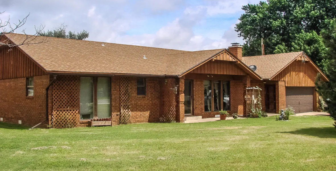 Located at the north end of Main Street in Aline, this modern brick home is move-in-ready. According to the Alfalfa County Assessor, the home consists of 1,941 square feet of living area and 624 square feet of parking & storage in the attached double car garage. This fine home was built in 1981, by our sellers father, and has only had those 2 families occupy it in that time frame. The home consists of 3 bedrooms, 2 baths, a living room, dining room and an entertainment room. Additionally, there is a nice metal workshop (with a cement floor) that is 48 x 24 and has a large overhead and walk through door. This building currently has approximately 15 (of the west end) as horse stalls, with upper and lower doors. There is another 200 square feet storage building (with a cement floor) that was built for a chicken coup/feed room, but is currently being used for storage. There is also a 31 x 12 open-sided RV carport on the property.