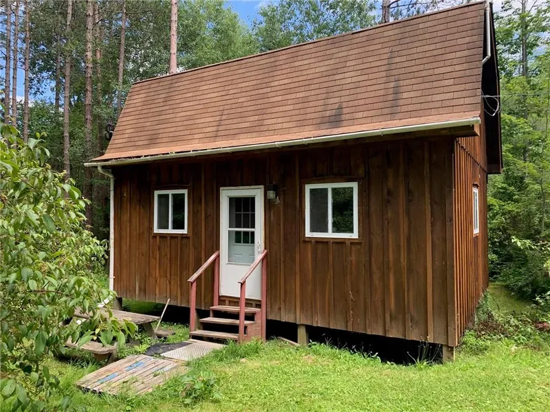 If you are looking for a "GET AWAY" Here is your chance to own a cute 960 sq. ft two story Amish built cabin on 8.14 acres. This property is ADJACENT TO STATE LAND. It's a wooded parcel with a creek and very private but is close to the village of Alfred. It has electric service to the cabin. There is a digester type toilet. It is ready for your finishing touches. Drywall still needs to be installed. Add well and septic and this could be year-round. The property also has a shed for storage. There is a 10ft ROW along back of property allowing neighbors access to State Land. Delayed Negotiations until Aug 14th, 5:00 PM