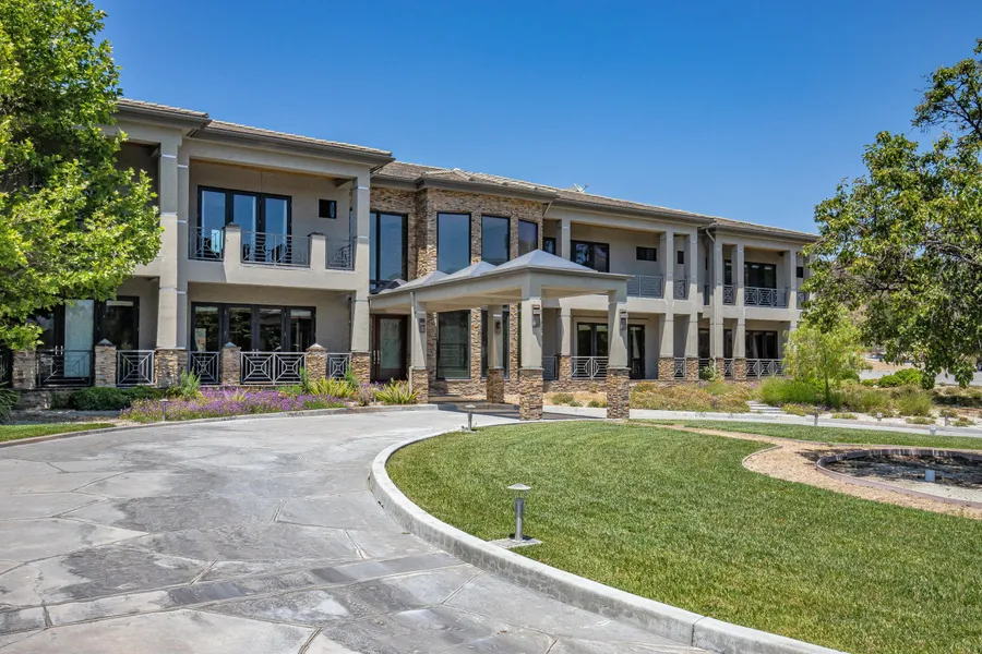 Wow !! This 13,000 sq ft Private Custom Built Elegant Living with tons of privacy. Nestled in the Sand Canyon Hills, The first floor amenities include a formal 2-story foyer with Marble Stairs. Formal Living & Dining Rms, His & Hers Private Offices. The Kitchen is an Entertainer's Dream with Granite Counters, Thermador Stainless Steel Appl. a dumb-Waiter to the 2nd Floor, Magnificent Cherry Wood Cabinets with High Lacquer Finish, A Large sit down Service Bar . A 750 Bottle Wine Cellar, Game Rm, Arcades, Billiard Rm , and a Large Workout Gym, with it's own Bath & Steam Rm, there's an Elevator to the 2nd Floor. The West End of the 2nd floor features the Master Bed Room Retreat with Double Sided Fireplace, 2 Huge His & Hers Walk In Closet. with a Private Balcony, and on the other side of the Master Bedroom, there's a Fly-Bridge leading to the Gazebo ,Pool & Spa. The Back Yard Patio area is The Entertain Delight , also comes with an Exercise Pool , to to many amenities