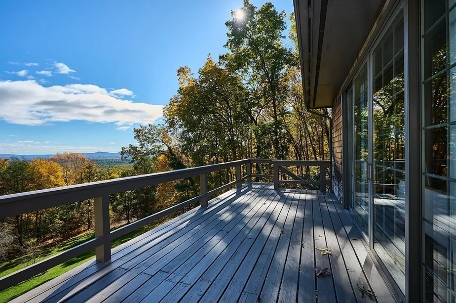 Want a STUNNING view of the Valley from Horse Mountain, a manicured park-like yard, a greenhouse & PRIVACY, w/in 5 minutes of downtown Florence? Then this house is for you! Outside this is a mid-century modern home, but inside are large rooms, ornate w/ detailed moldings, built-ins & rich HW floors. Off the entry hall is an impressive library w/FP, 1/2 bath, a LR also w/ FP & a slider to gaze at the foliage leading to a formal DR. The kitchen has lots of cabinetry, a W/D, pantry & slider to the wrap-around deck. A perfect home for 1-floor living, the large main BR has MANY closets, a dressing rm & full bath. 2 large BRs, a full bath, a family room, a 2nd kitchen w/ stackable & dining area, a SEPARATE ENTRANCE, workshop & storage rooms set apart the lower level. Rent it or incorporate it easily! Don't forget the greenhouse & potting shed! A new Viesmann boiler & hot H20 tank added in 2020 & AC replaced in 2022! A little TLC will make it yours! Showings begin @ Open House 4/20 from 1-3.