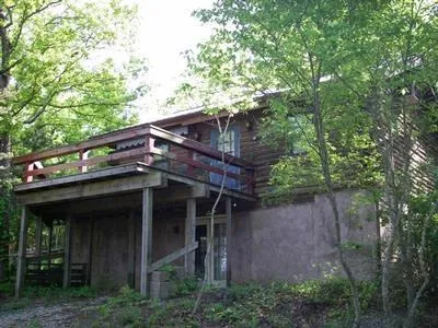OZPO-3/4 Take in the wonderful view up and down Crooked Creek. This cozy 2 story log cabin has 1 bedroom, a sleeping loft, sunroom, 1 3/4 bath and sits on a beautifully wooded 8.18 acres with 277.96' of Crooked Creek frontage, several outbuildings, 1 small pond, and a private, gated drive. It is located near the confluence of the White River and Crooked Creek in Rea Valley. Many bald eagles frequent the skies in front of the cabin.