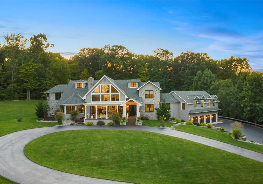 Just five miles to Route 80 and 65 miles to Manhattan, this extraordinary home in Hope lives at the end of a long private drive on 8.18 acres with 15 acres of state land in back, overlooking valley views. Every detail, large and small, of this almost 7,000 sf estate was lovingly considered. A first-floor owners' suite with a massive walk-in dressing room/closet, luxurious bathroom with radiant heated floors, soaking tub, and private access to the back deck and hot tub; the home has an open-concept first floor with a kitchen built for a chef, boasting separate refrigerator, freezer, and ice maker that blend into the custom cabinetry; a second oven in the extra-long island- a baker's dream; and even a hidden stand mixer lift for maximum convenience. A double-height sun-drenched great room, to the fully operable window wall that opens the main living area to the massive porch and valley vie...