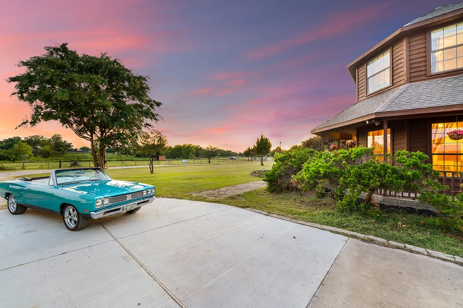 Magnificent 8+ acre estate in horse country. Rockwall ISD. City of McLendon-Chisholm, Spacious 2 story, huge master and master bath. Wrap around porches. 75% brick const. Hand scraped wood floors throughout except for media rm. Gorgeous floor to ceiling, double-sided fireplace. Beautiful kitchen featuring large island, copper sink, dual fuel 5 burner dbl oven-stove w. abundant cabinet and storage space throughout. Picturesque views from every window! 4 bay 50x40 garage, includes rubber floored gym and huge wkshop. Lg 30x50 steel barn on 45x65 slab w. gabled awning on front and huge side canopy along the full length. Both HVAC systems replaced in '19. Pipe fencing, cross fencing and loafing sheds.