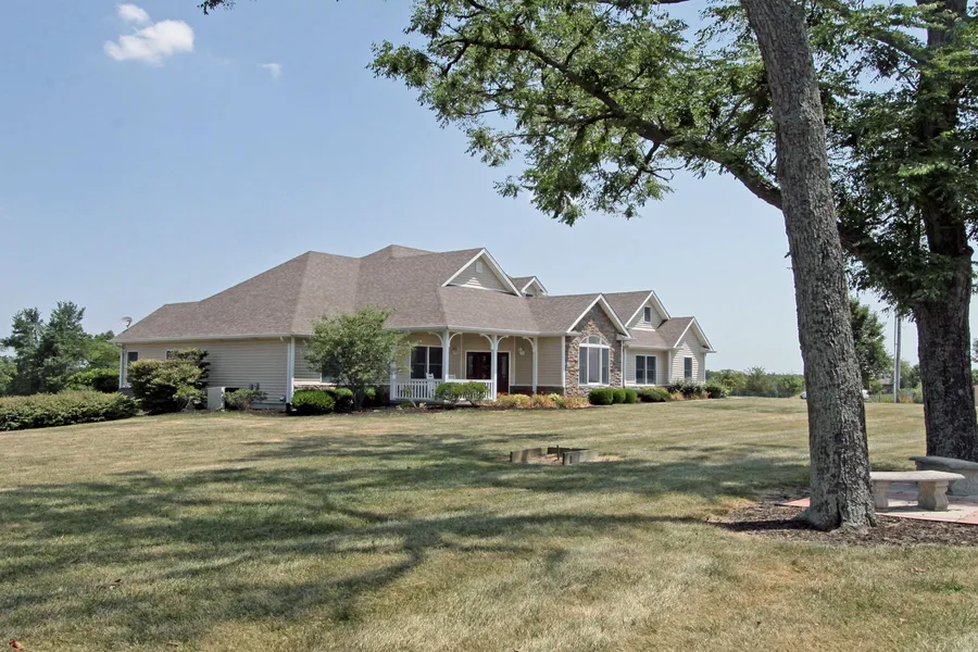 Superior construction can be found in this gorgeous, custom built home on 8 acres! This home boasts an upscale kitchen with cherry cabinetry and spacious work island. From there you enter the stylish dining room, perfect for entertaining. Huge great room with plenty of windows for lots of natural light, expansive master bedroom suite with luxurious master bath with whirlpool tub. Other features include a home office and a relaxing sun room to enjoy the views of the farm. Partially finished basement with wet bar, fireplace and full bath. Farm lays well and has a 60 x 40 metal workshop with office and 1/2 bath, with an attached 1000 sq. ft. covered shed area and a 40 x 30 barn with hay loft. An outstanding property! Handicap Friendly with wide doorways and no steps to get in and out of the house.