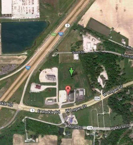Directions: I-69 to Markle. Exist east onto E Markle Rd/Hwy 224/W Logan St to left onto Annette Dr (property is adjacent to the west and north of the Super 8 Motel at 610 Annette Dr).