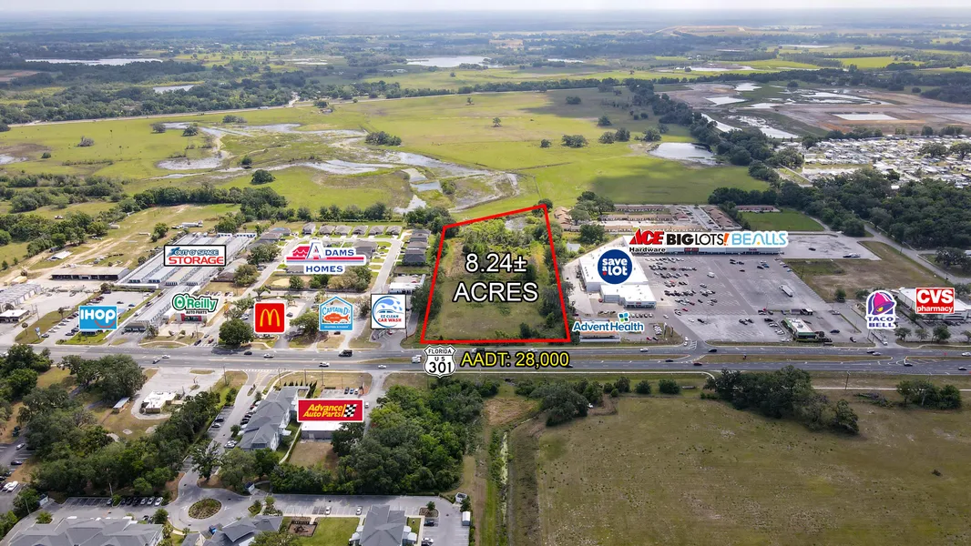 PROPERTY DESCRIPTION - The Delong property is 8.24 acres of vacant commercial land on US 301 in Dade City. It's currently zoned General Commercial and has a future land use of ROR. Utilities are to the site. The AADT is 23,500.