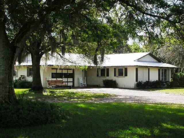Concrete block home has 1,556 sq. ft. of living space, metal roof, and four foot eaves to help keep out the summer heat. All windows have accordion storm shutters. Home is surrounded by large oak trees. Chain link fence across the front roadway. Paved drive in to garage. Central air and heat. House is on well water and septic.