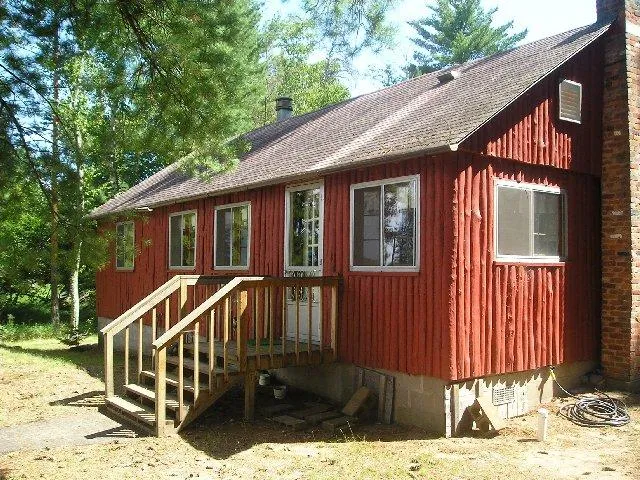 818515 LEADER LAKE. What a lot! 255 feet of sandy beach with western exposure for all the sunsets. No steps needed to get to the beach on this one. 8.3 acres of privacy. Vertical log home with pine interior. Comfortable cabin with wood fireplace in the living area, dining in the kitchen, huge bedroom and bath with shower. Add the bunkhouse (24X16) that can sleep more than 8. There is also a workshop, privy, shed and carport. All located with the trees as a backdrop and the lake as the stage. This one comes furnished. Just move in!