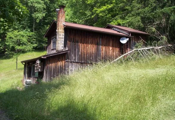 #13890 - 8.34 acres, minutes from Sutton Lake and Recreational area. Small two level cabin has 500 sq. ft. of living space. Lower level has kitchen and dining area, upper level is combined living room and bedroom, 3/4 bath and storage closet. There is also an outbuilding and plenty of room to add on or have a garden. Quiet setting on rock base county road. Priced at $53,500..