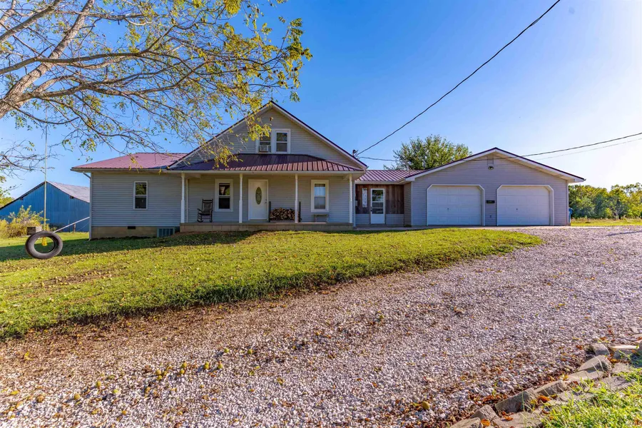 This beautiful home on 8.374 acres sits on the outskirts of Tell City and has beautiful country views! As you drive up to the home, you will see the pond and woods and then the view opens to the home. The large, covered front porch allows you to sit and look out over the peaceful countryside. Go through the front door and enter the spacious living room with a wood burning stove and windows overlooking the property. The primary bedroom sits off the living room and has a large walk in closet and en-suite bathroom with a stand up shower and whirlpool tub. Head into the eat in kitchen which has plenty cabinet space, a small breakfast bar, and a patio door that leads out to the back deck. The laundry/mud room is spacious and has room to drop your shoes and bags off as you come inside from the enclosed porch that is connected to the garage. Finishing off the inside of the home is another full ...