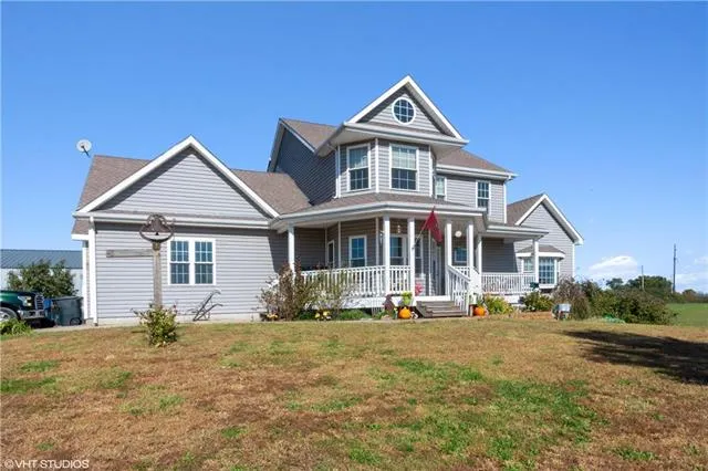 WELCOME HOME TO 8.39 ACRES OF STUNNING VIEWS, ROLLING HILLS, WILDLIFE, AND INCREDIBLE SUNSETS in charming country, 3 bedroom home. Large eat in kitchen for entertaining, vaulted great room leading to oversized deck. Master on main and 2 additional bedrooms up with loft. Enormous lower level with charming & unique bar with projections screen for all of the Chiefs games & movie watching! NEW (2018) top of the line HVAC. 30x40 metal outbuilding with partial electrical & plumbing. Just minutes to Peculiar city center!