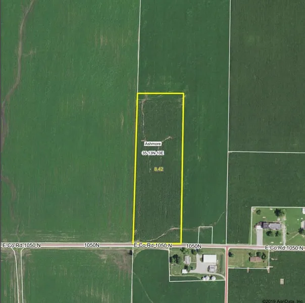 This is an 8.42 acre parcel (all tillable) just west of Ashmore, IL. The perfect size for a little farmette or future building site. Class B soil with a productivity index of 127.50. Current tenant has growing rights for 2019 crop season. Possession will be available after harvest. An additional 60.24 acres is just west of this parcel and is available for purchase.
