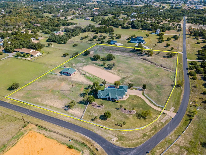 Stunning Custom Home on 8.44 acre estate. Huge Great Room with vaulted ceiling, wood beams, raised hearth, stone fireplace and built in cabinets. Large kitchen with high ceiling, stone columns, breakfast bar, double ovens, large pantry with tons of storage. Spacious primary bedroom with sitting area and large master closet with safe room. Large master bath with tub and separate shower. Fourth bedroom or study option with built in desk & cabinets. Formal dining with stone arches and crown molding. Large covered rear patio overlooking the inground pool. 3 or 4 stall horse barn, feed/tack room and loafing shed. Dressage Arena with irrigation system 80X200. Current Appraisal $1,275,000.