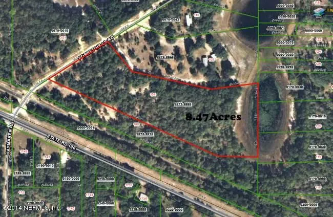 8.47 +/- acres, high & dry, just off a paved road. Wooded.