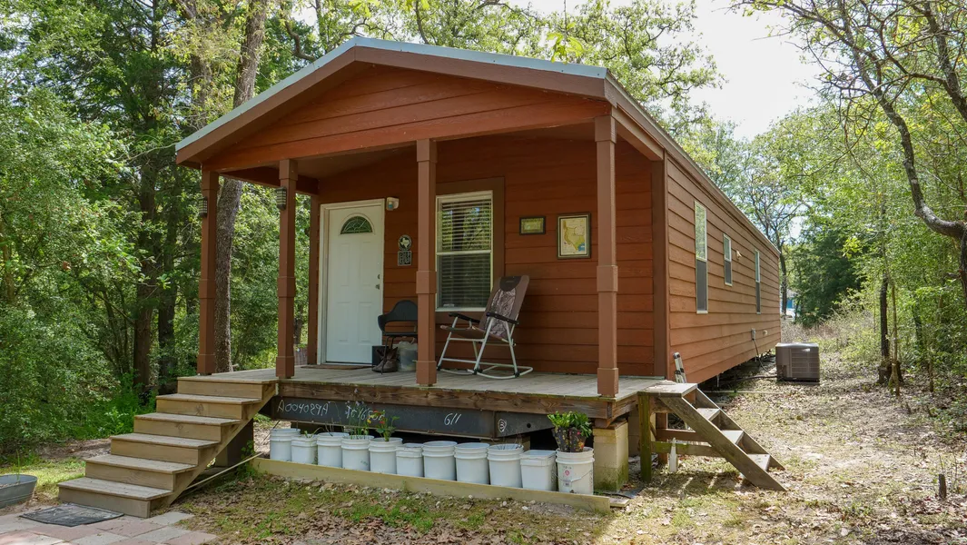 This property has everything you need in a small tract! A spacious +/-758 square foot cabin is in place and ready to move in. It has 2 beds and 1 bath, a full kitchen/living area with a cozy front porch. The cabin was constructed in 2015 and has a steel roof with wood siding. Stay on the property in comfort year-round with central HVAC. This cabin is a great place to call home, use as a weekend getaway, or housing while you build your forever home. It even has 5 years left on a transferable home warranty! This tract has electric, an extra RV hookup, and a southwest Milam water meter in place as well. A storage building, dog pens and air-conditioned shipping container will convey with sale!