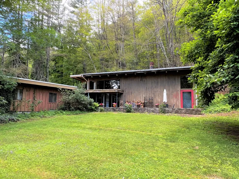 Are you looking for a Mid Century Contemporary, this one could be fabulous with a bit of updating. This home started its life as a studio for artist Earl Hubbard in the mid 1950's and converted to a 3 bedroom home in the 1960's. The center of the home is the great room with its soaring ceiling and large windows. The room offers a library area, mid century, wood-burning steel cone fireplace, and dining area. The kitchen was renovated about 15yrs ago and is open to the great room. A family room is flanked by beautiful stone walls. Up the wide, open stairs is the large primary bedroom with a stone fireplace, walk-in closet and ensuite bath. Accessed across the balcony are 2 bedrooms and a bath. Outside there is a large patio and a 2-car garage with a third bay or workshop. A Scott, free form Gunite pool, gazebo and pool house exist, but have not been used in many years so will need attention to get back into usable condition. Set privately on 8+ acres, this home has huge potential.