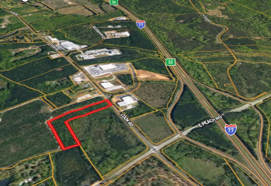 Research Parcel InformationFrom I-77, take Exit 32 (Peach Road) travel West .3 miles to the intersection of Cook Road and Peach Road, turn North on Cook Road, the property will be ahead on the left, West side of Cook Road.