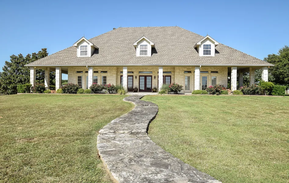Welcome home to 124 Bear Path Trail! Located in Woodlands of Bear Creek on 8+ acres w stocked pond, walking trail to Bear Creek. Enjoy natural landscaped views from over 2,300 ft of covered patios that surround the home. Updates throughout, 2nd master suite, custom blinds, roller shades. In the foyer you are greeted by a beautifully hand milled stair case that leads up to spacious Master Suite. Living room has wet bar, fireplace, hand scraped hardwood floors. Kitchen offers island, breakfast bar, granite, Jenn Air cooktop. Enjoy the sparkling pool, spa & stocked pond. 10 ft privacy fence, concrete driveway, steel carport, impact resist composition roof. Room in attic for expansion. A must see!