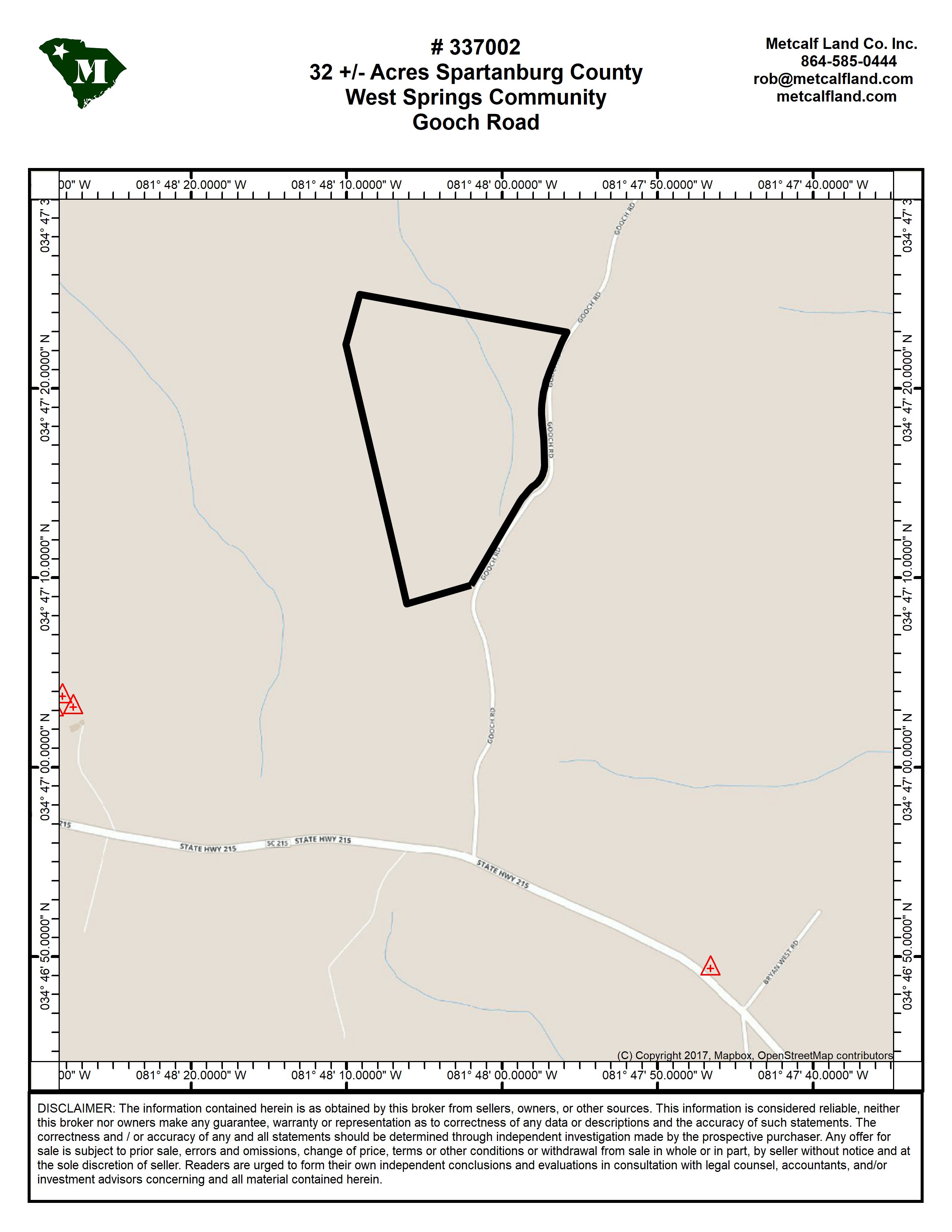 Research Parcel InformationFrom Pauline take Hwy. 215 towards Union, turn left on Gooch Rd. Property is on right.