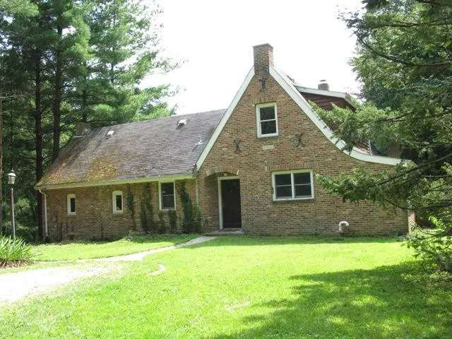 Reclaimed antique brick beautifully reconstructed into this lovely Tudor-style home in the European (I mean Brown County) countryside. Easy mistake...you'll see what I mean. Private tree-lined lane, with\ /pasture, woods, ponds. Dramatic great room with hardwood floors, wood-paneled beamed cathedral ceiling, fireplace. Loft, 2nd BR & FBA up. Newer oversized septic to accomodate future expansion. If you can offer a gentle loving touch to return this home to its original glory you won't want to miss this one-of-a-kind opportunity.