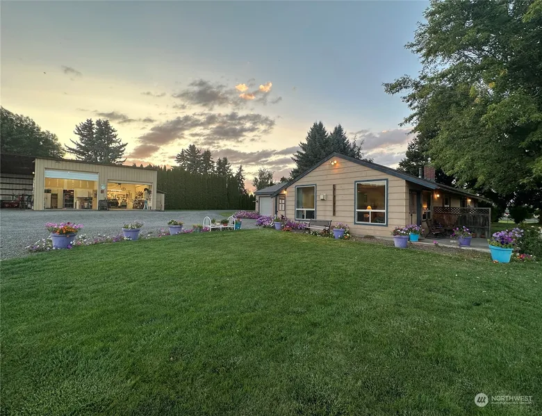 Country roads take me home! Westside 8.71 irrigated ac. w/immaculate single-story home & stunning views of the Stuarts & endless fields. Inside home find a country kitchen w/slate floor, large dining/gathering area, quiet living rm, bonus rm w/French doors to charming garden patio. Bring your vision (sunroom for you avid plant lovers? Extra space for guests? Follow your heart!). Country chic bathroom w/walk-in shower & refinished antique claw foot tub. Outside find a Large 4 bay heated shop & storage areas (2 w/doors)vacuum & compressor, 3-stall horse barn w/matted stalls & tack room w/concrete floor, several garden areas, fruit trees, & expansive lawns. Easy access to I-90, Newer well (2015) New Roof (2023). Gated pipe included.