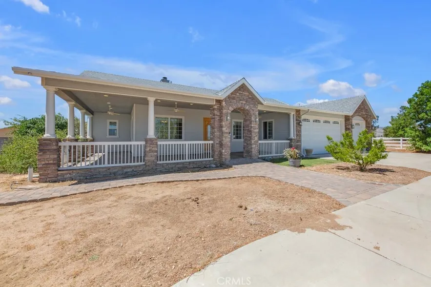 Experience this charming single-story home on 8.71 acres in the Lancaster desert. Built in 2005, this 2,614 sq. ft. residence features rustic stone archways, an L-shaped front porch, and a circular drive leading to a 3-car garage. Inside, enjoy the open layout with laminate flooring, recessed lights, and ample storage. The kitchen boasts wood cabinets with French inlays, black granite countertops, built-in appliances, a walk-in pantry, and a breakfast bar island. Adjacent is a cozy family room with a fireplace. The main hallway leads to spacious bedrooms, including a primary suite with a walk-in closet and en-suite bath featuring a double sink vanity, walk-in shower, and soaking tub. Outside, unwind on the large back porch with a stone-lined BBQ kitchen and enclosed yard. Additional Features includes a 3 Stall Barn, storage & Feed room, round pen and separate fenced area, plus extra stor...