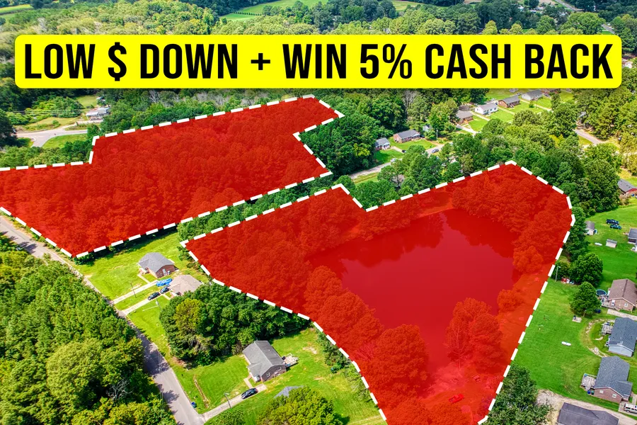 The 4.25-acre tract features a private pond framed by trees.