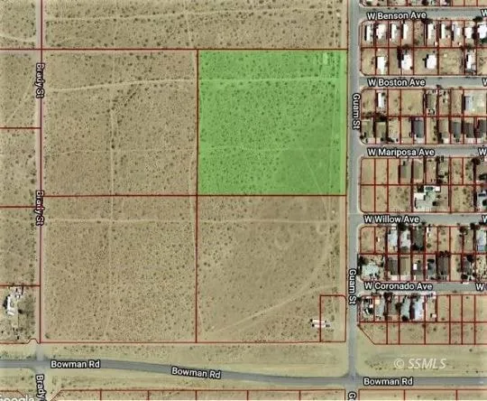 8.86 ACRES JUST AT THE EDGE OF THE RIDGECREST CITY LIMITS! Parcel is located west of Ridgecrest Heights and just north of Bowman Rd on a paved city street. City water is available. According to IWV Water Dist water meter set up fee is only $5068 as this parcel is part of the Ridgecrest Heights Assessment District. Power can be accessed from power poles on the east side of Guam St according to Edison. Urban Reserve zoning allows for a single family home with an accessory dwelling unit to be built. Animals are also allowed with this zoning. City of Ridgecrest states the parcel can be subdivided depending on the submitted plans. A great location to establish that once in a lifetime stately estate home. Three other neighboring parcels of like size are also for sale. UTILITIES ARE EASILIY ACCESSABLE HERE! DREAM HOME READY!