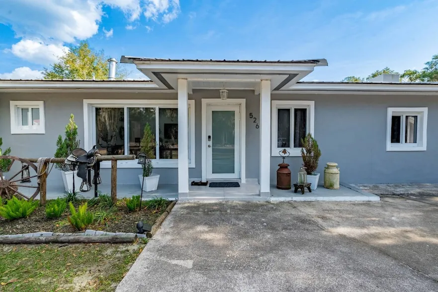 Welcome to 526 County Road 219 in Melrose - where modern luxury meets refined country living. Set on 8.96 private, fully fenced acres behind dual electric security gates, this stunning 4-bedroom, 3-bath retreat has been masterfully updated inside and out with no expense spared. From the moment you arrive, the attention to detail, craftsmanship, and pride of ownership are undeniable. Step inside to discover a beautifully redesigned interior featuring a completely remodeled gourmet kitchen with quartz countertops, custom cabinetry, stainless steel appliances, new electrical and plumbing systems, elegant tile flooring throughout, and three fully renovated luxury bathrooms. New hurricane-impact windows and doors offer beauty, efficiency, peace of mind, and exceptional storm protection. The home offers 1,835 sq ft of stylish living plus a rare 4-car, drive-through garage - the ultimate conven...