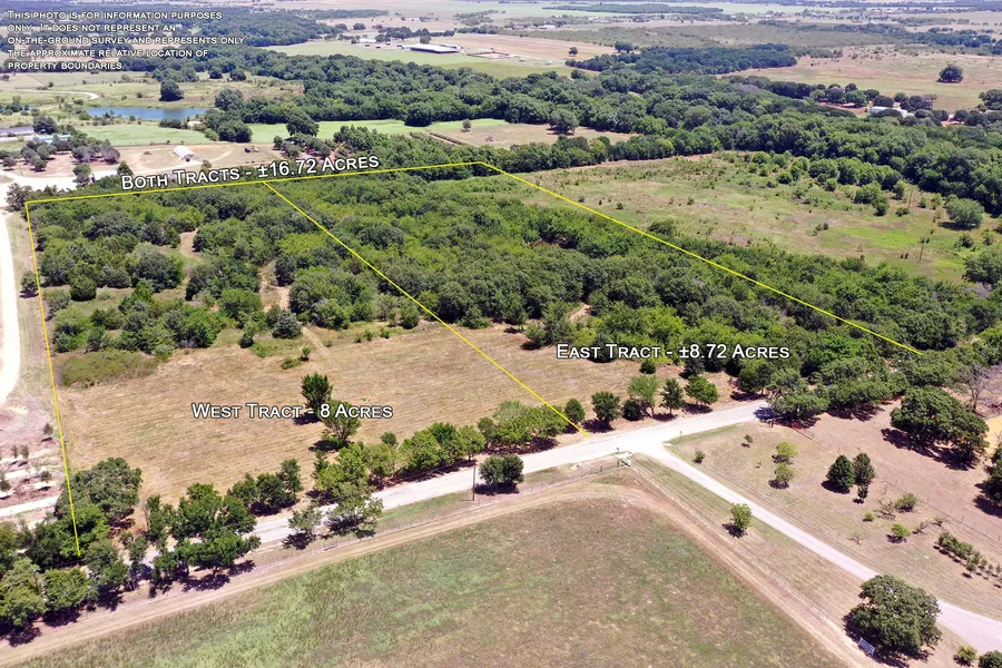 Part of a larger 16.72-acre parcel, this prime acreage is being offered as two separate parcels. The western tract boasts 8 acres, while the east tract, with a stock pond, offers approximately 8.72 acres. Take advantage of the opportunity to acquire each tract individually or the entire 16.72 acres.