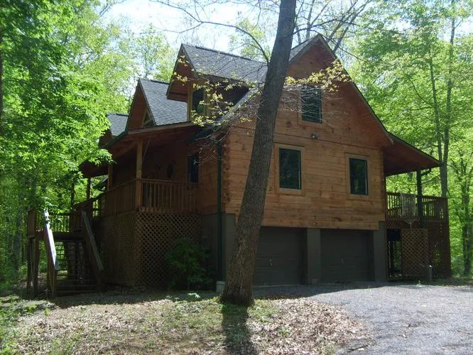 Fabulous property on 2 lots with 8 acres and LONG Greenbrier Riverfront property nestled in the trees. GREENRIER RIVER TRAIL is in the back!!! Private community just 20 minutes north of historic Lewisburg. Appalacian loghome built in 2000 with cathedral ceiling, huge stone woodburning fireplace. Master bedroom on first floor with private bath. Kitchen/dining area plus half bath here also. Ground level is built to FEMA regulations and has 2 sets of garage doors to offset any potential flooding. Upper floor has 2 large bunk rooms with full bath. Comes MOSTLY FURNISHED!