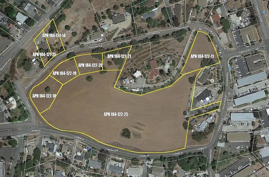 PRICE REDUCTION - Development opportunity. Approx 8 acres of vacant land bordering City of Vista, with close proximity to Highway 78 and NCTD Sprinter Buena Creek station. (Eight separate APN #s: 184-122-11,18,19,20,21,25 & 184-121-14,15) Per County of San Diego: property is zoned RU (Urban Residential) and has L building type which allows building permits for multiple residential uses. General Plan designation is Village Residential (VR-20), allowing for up to 20 units per acre.