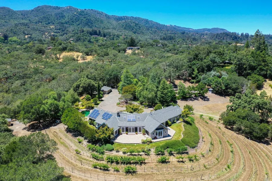 Dramatically situated on a gentle knoll, this sun drenched 8+acre estate features breathtaking views of Sonoma's Valley of the Moon. The casual/contemporary design offers a comfortable environment that flows naturally to the outdoor decks, patios, and pool. Accessed by a gated drive lined with moss-laden oaks, this private and serene country property is one of Sonoma's most desirable locations. Magnificent landscaping, in-ground pool and spa, tennis and basketball court, hobby vineyard, dog kennel, lower pond, two-stall horse barn currently used as storage. Solar, septic, propane, private mutual water district. House was remodeled in 2001 and is ready for a current update.