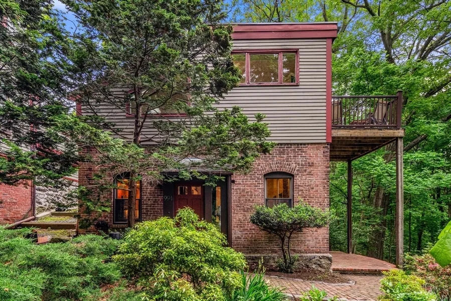 Nestled in the historic Adams Arboretum and perched above the verdant expanses of the Arnold Arboretum, discover this rare 2 bedroom, 2 bath free-standing cottage condominium. Meander down a brick path and enter the great room where the dramatic stone fireplace, soaring ceiling, and walls of windows blur the line between indoor living and the surrounding lush greenery. An efficient kitchen, bath with steam shower, and in-unit laundry complete the main level. Upstairs offers a unique lofted bedroom, a desk alcove, and a spacious primary suite complete with walk-in closet, tile bath, and sliders to a deck with bucolic vistas. Begin the day with a morning coffee on one of the enchanting private patios or deck, and take a brisk walk along a nearby trail. Set on 8 acres with shared amenities including sprawling wooded & landscaped grounds, a seasonal swimming pool, tennis court, and plentiful parking. A unique blend of privacy, charm and nature - an urban sanctuary like no other!