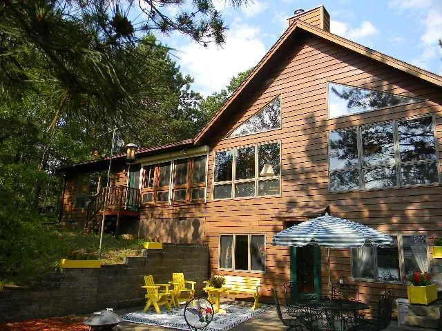 Beautiful lot to watch the sunsets. 200' of Maui sand and 8 acres of woods. Private setting. Loving attention to every detail of the over 2600 sq ft. home. Soaring ceiling to custom made cabintry. Large open kitchen, living area with fireplace, office with gas fireplace, owner's suite with windows to the lake, bath with laundry. Lower level walkout perfect for kids or guests. 36x48 pole bldg with heated workshop. 3 car garage. full 5 amp RV hookup. Many extra details.