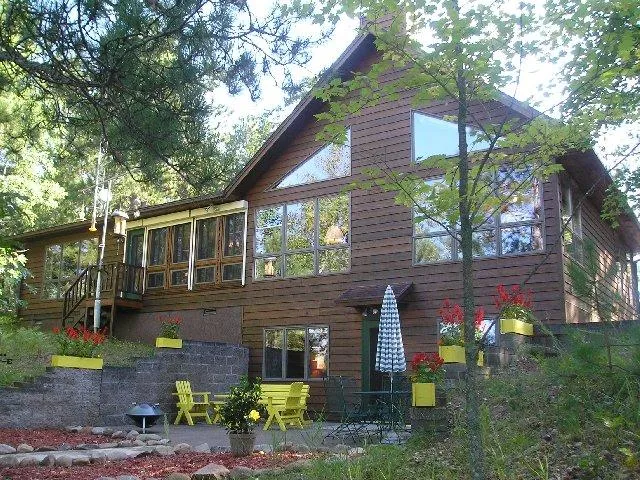 Beautiful lot to watch the sunsets. 200' of sandy beach & 8 acres of woods. Private setting with easy maintenance landscaping. Loving attention to every detail of the over 2600 sq. ft. home. Soaring ceilings to custom-made cabinetry. On the main floor, highlights are the large open kitchen, living area with fireplace, study with gas fireplace, owner's suite with windows to the lake, and bath with laundry. Lower level has 2 bedrooms, full bath, lounge area, and storage. 36 x 48' pole building with heated workshop and 14' clearance door. 3 car garage with exercise room complete with TV. Full 50amp RV hook-up. Just too many details to mention...a total packagE.