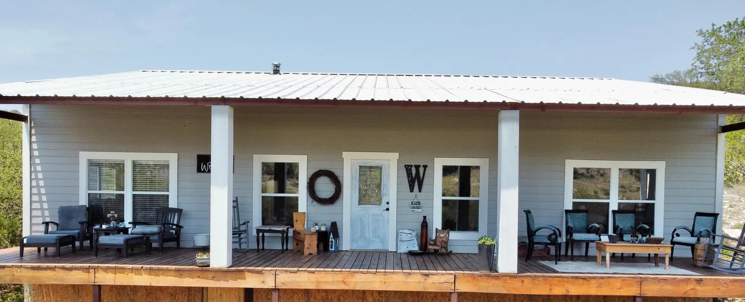 2,000 sqft. 3/2 steel frame home (does need a few things done to complete the finish out and is livable), the diesel generator comes with 500 gallons of diesel, trailer and diesel tanks stay allowing for back up power, the wood burning stove is also a bonus and provides heat throughout the home in the winter months. There is no central heat and air only window units and small stand up port-a-cool units to keep the home nice and cool in the hot summer months. This home has 2 tankless water heaters connected with an additional backup water heater that is not connected. The water well is about 10 years old and produces around 14 GPM, a 3,000 gallon storage tank with a new booster pump (installed in 2021) and backup booster pump just incase there is another bad freeze. The home has a spacious kitchen with plenty of storage and counter space. With this open floor plan it allows for breath taking views of the country side and comes fully furnished. Included is a vintage Wolf stove (propane), deep freezer, refrigerator, dishwasher, ice maker, microwave, furniture (seller to determine exact items to be removed) including beds, couches and so much more. With the right offer the home will come with a flooring allowance, this will give the buyer the opportunity to choose the flooring they desire. The walls are all insulated with spray insulation in the attic helping keep this home more energy efficient. Seller may include some additional tools, generator, chain saw and more with the right offer. This property is extremely remote and gives a feeling of being on your own secluded ranch, only about an hour from Kerrville.