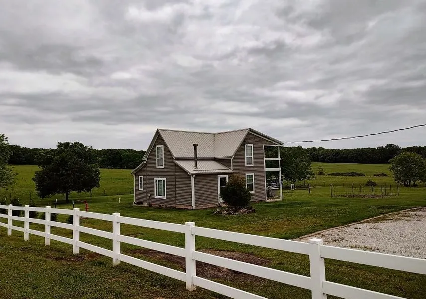 80 acres of a beautiful panoramic view with US 54 frontage. Located between El Dorado Springs and Collins, MO. This 3-bedroom home has been remodeled and updated and looks fabulous. Home features an upstairs balcony or downstairs patio to enjoy the view across the landscape of the pasture with scattered trees and a creek. Enjoy the stocked pond with great bass and crappie fishing. Fenced and cross fenced this property is ready for your pets and livestock and has a 36 x 50 barn already for your shelter needs. Simple country living comes to mind when you view the location and layout of this land.