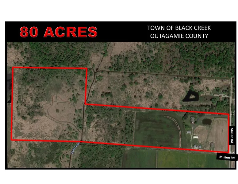 80 acre property located on a quiet town road (Mullen Rd) in the Township of Black Creek. These 80 acres consist of approximately 55 acres of partially wooded recreation/hunting land and approximately 19 acres of tillable cropland. Buildings on the property consist of 3 grain bins/dryers, 3 sheds and a house. The house is being sold in "as is" condition. Driving distance to property from the City of Appleton is about 11 miles to the north.