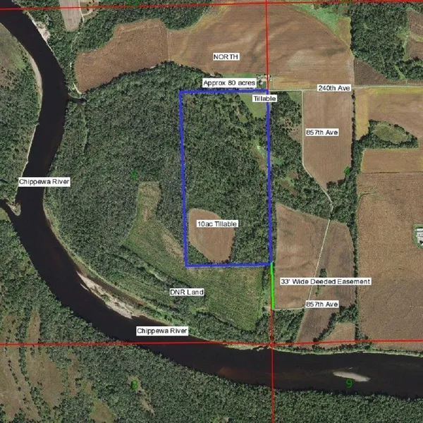 Approx. 80 acres of land located just north of the Chippewa River in Dunn County. Property has great diversity, from hardwoods of red and white oaks, approx. 15 acres tillable producing income, 3 acres of wetlands and all very secluded. The land borders over 100 acres of DNR land on the south and west which will give you access to the Chippewa River. 63 acres are enrolled into Closed MFL for timber management, wildlife habitat and lower taxes. Electric is at the road for easy access. Access on north and south end of property makes deer hunting in any wind possible. Boundary lines are approximate. Per Dunn Co. tax role, this property is in the Elk Mound school district.