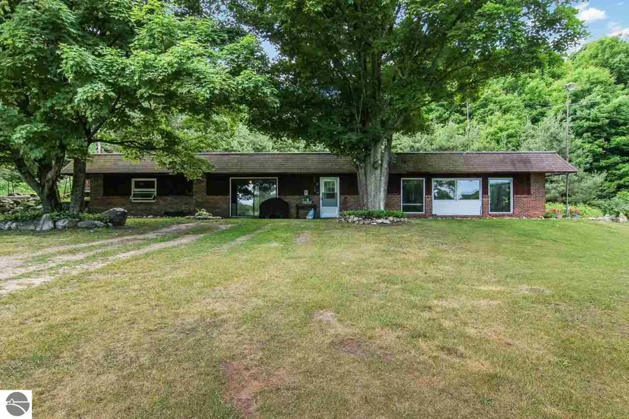 Private Setting with stunning country side views. This ranch home sits on 80 gorgeous areas just a mile from Torch Lake and bordering Conservancy land. This is a nature lovers paradise. Charming Ranch home has an open floor plan with kitchen, living and dining all taking full advantage of the stunning views. A large granite fireplace for cozy evenings by the fire. Four spacious bedrooms and a large bath. Sit on the patio and listen to the birds sing. There is an older barn on the property, great for storage. The land has woods and fields with rolling hills and two ponds on the property, hike, fish, ski and hunt all on your own land. Would also make a great investment property for the ideal Air BnB get away. Mineral rights will transfer at closing current lease paid out $1,155 in 2020. Rare large parcel opportunity. Offers presented to Seller on Monday June 28th 9:00 am.