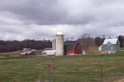 with the remainder in woods and pasture. The 140' barn has 48 tie stalls and universal pipe line. Other buildings include pole shed, older shed,
