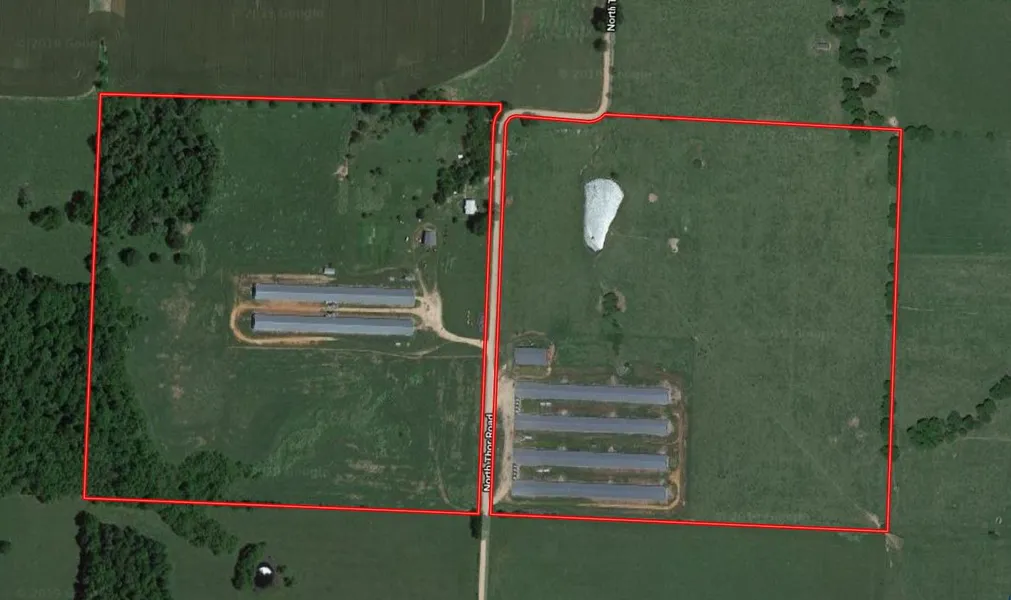 Get into farming on the fast track! 80 acres mostly open with native grasses for cattle and 6 chicken houses built 2006 and 2012. Total of 133,840 square feet of production with a George's contract for 4 pound birds equates to about $325,000 annual gross income. Propane, well water, good shops and barns, and a cozy 3/1 home and you are set.(taking back-up offers)