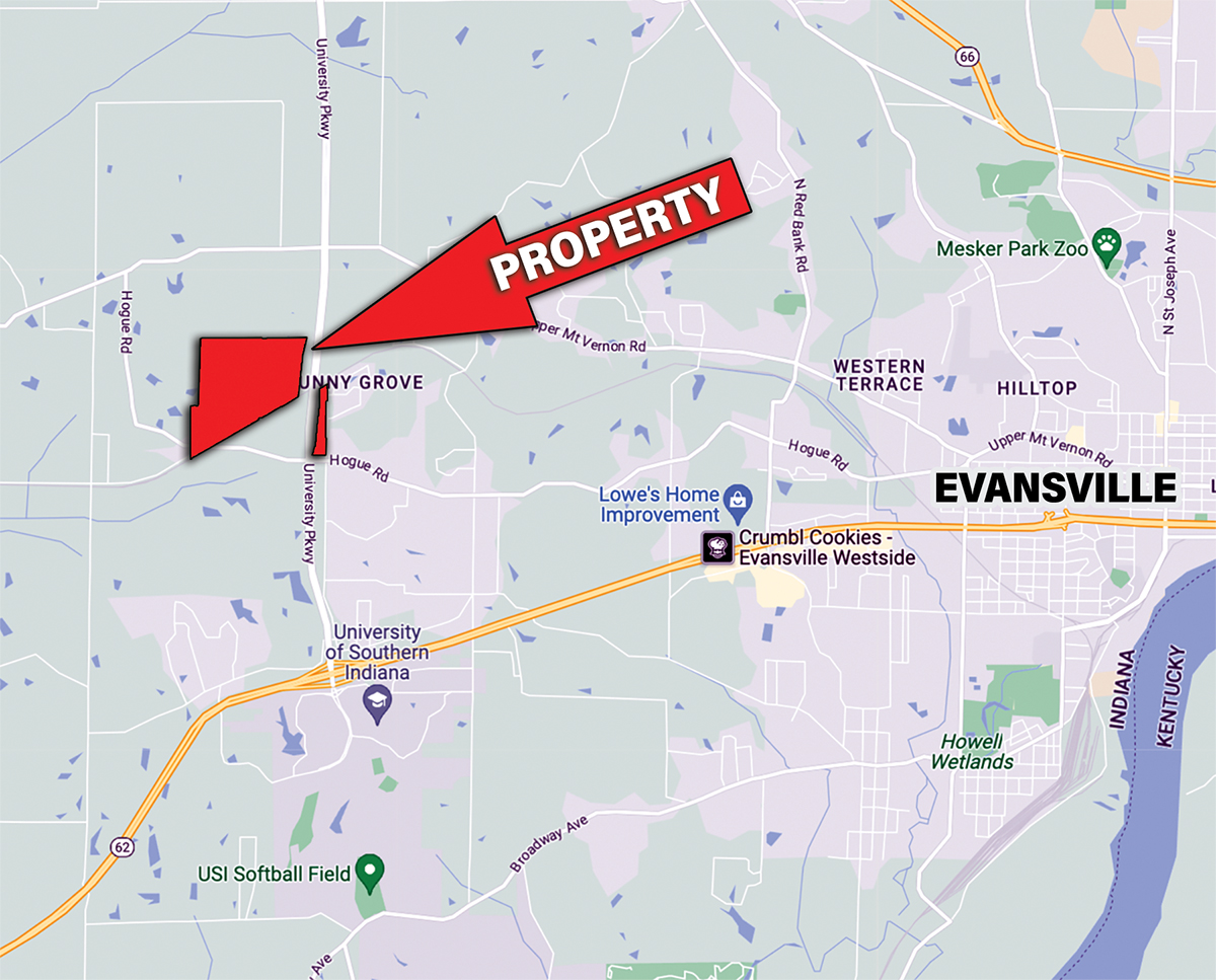 Property Location: Located just north of University of Southern Indiana, this property has frontage along University Parkway and Roesner Road for convenient access just off a high traffic thoroughfare. The property is located 1-mile north of Hwy 62.