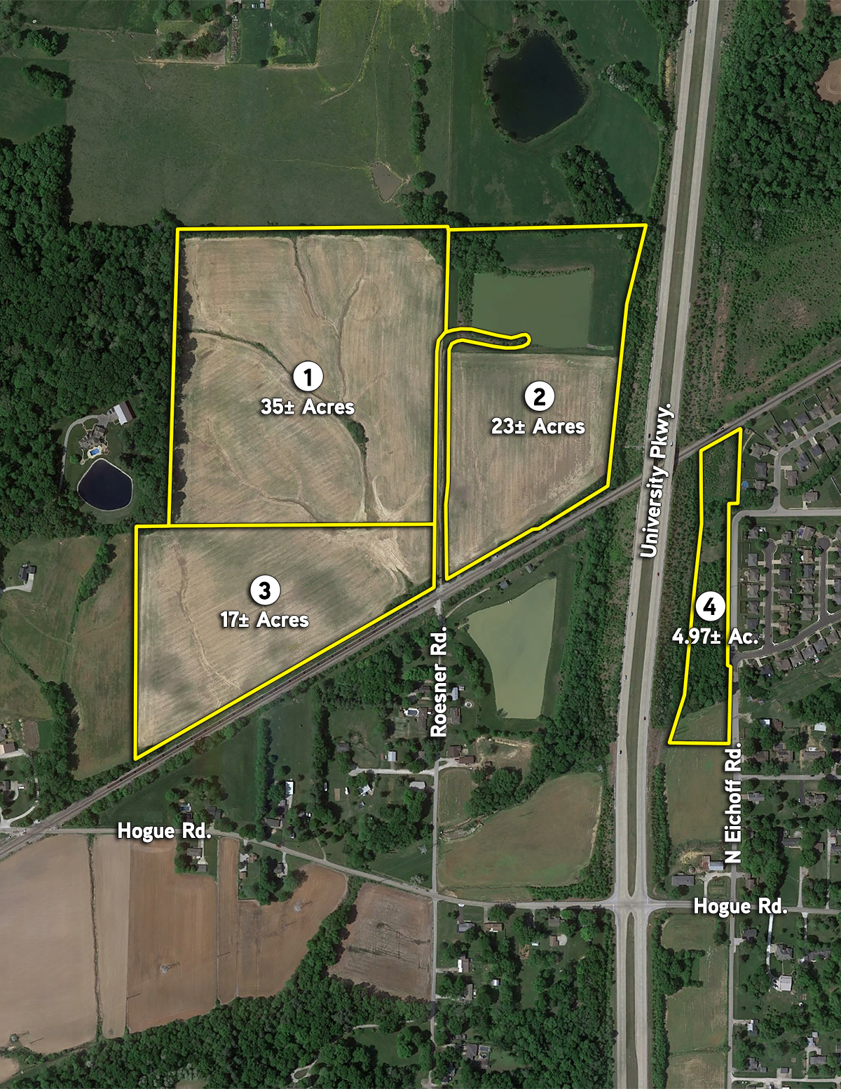 Research Parcel InformationProperty Location: Located just north of University of Southern Indiana, this property has frontage along University Parkway and Roesner Road for convenient access just off a high traffic thoroughfare. The property is located 1-mile north of Hwy 62.