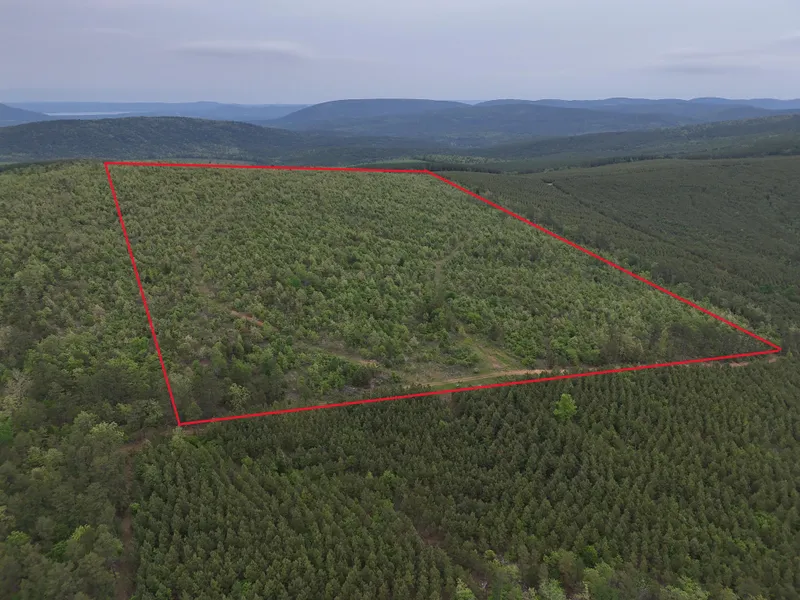 Site: Off Grid 80 Acres mostly wooded with hardwoods. Sloped from the Southeastern corner at 1,140 ft elevation to the wide plateau at 1,380 ft.