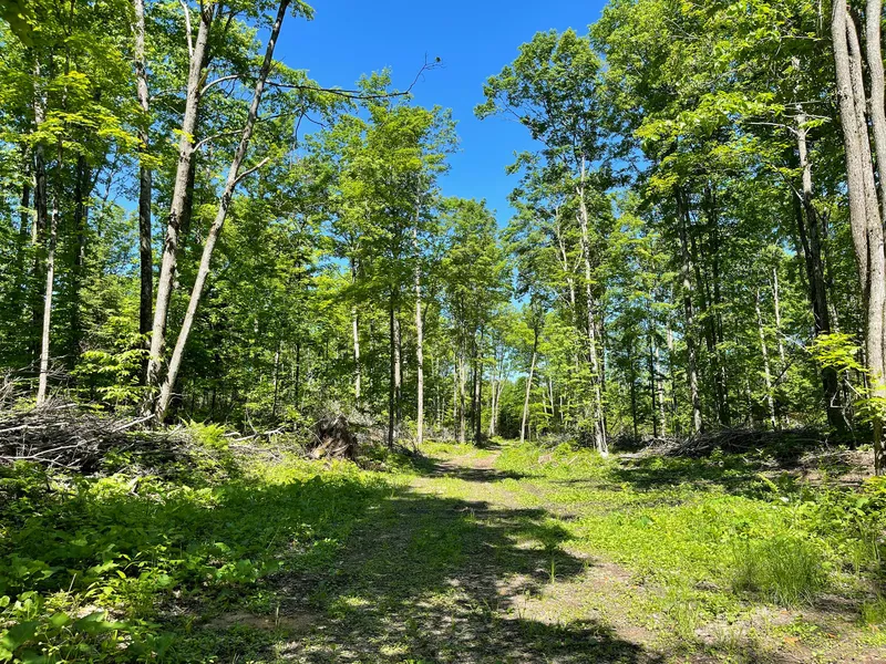 80 acres near Curtis Michigan, located between Big & South Manistique Lakes. Property is 1/4 mile off of year around S Curtis Road and is accessed by a private easement trail now in place. Terrain is rolling to flat with hardwood ridges, Aspen stands and some Cedar bottom lands. The hardwood ridge was lightly select cut recently and the trail roads were improved. Good building sites can be found either in the hardwoods or overlooking the scenic pond which is close to 2 aces in size. Quiet, private and yet conveniently located, this could be your new homesite or camp site in a 4 season recreational wonderland.